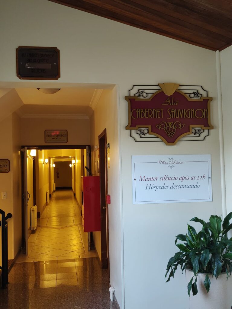 O hotel conta com diferentes opções de quartos, que vão desde acomodações executivas até suítes especiais. Ficamos em um quarto amplo, muito bem cuidado e com todo o conforto necessário para uma estadia tranquila. Cada ala do hotel recebe o nome de uma uva típica da região, como Chardonnay, Merlot e Cabernet Sauvignon, trazendo um toque especial que conecta a hospedagem ao mundo do vinho.